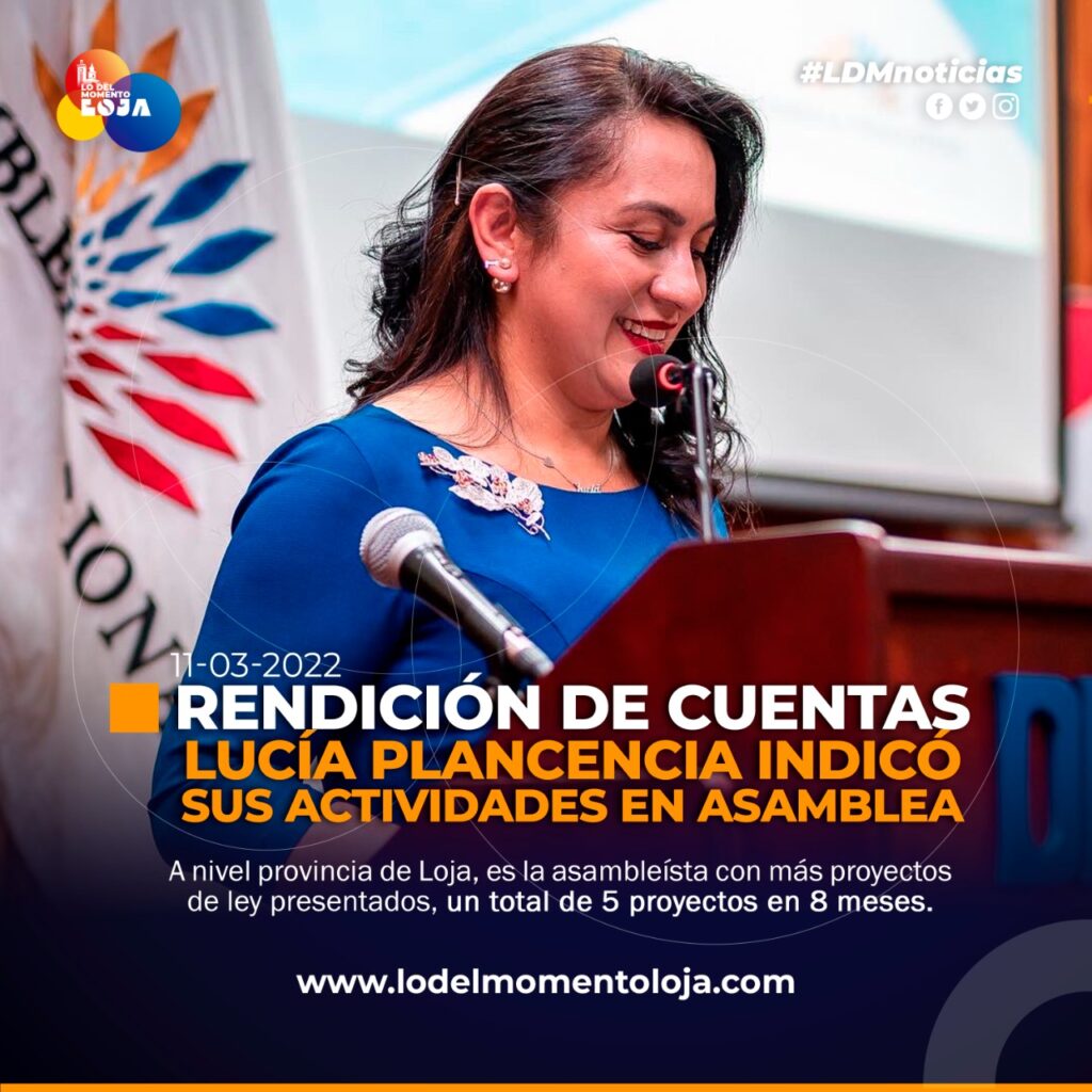 #Ecuador | El día de ayer, 10 de marzo del 2022, la asambleísta por la provincia de Loja Lucía Placencia, realizó su rendición de cuentas acorde a los artículos 89 y 90 de la Ley Orgánica de Participación Ciudadana, en la que con presencia de ciudadanos, académicos y activistas sociales, fueron parte del evento que se realizó en el Salón de la Democracia de la Coordinación Nacional Electoral del CNE, provincia de Loja.