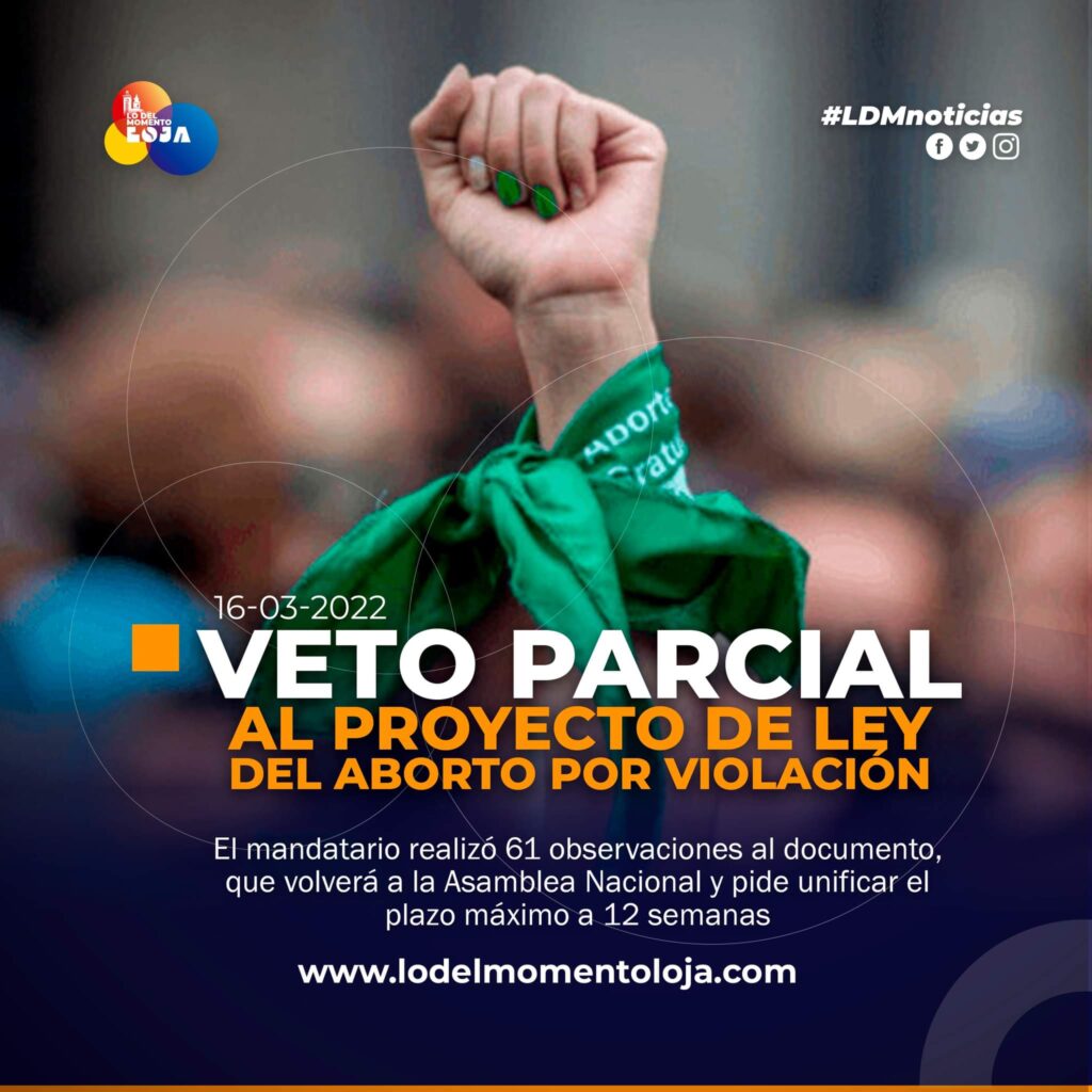 #Nacional | El presidente Guillermo Lasso comunicó su decisión de vetar parcialmente el proyecto de ley de interrupción del embarazo en casos de violación aprobado por la Asamblea Nacional y que permitiría que las mujeres que resultaran embarazadas por una violación puedan abortar en un lapso de tiempo determinado.