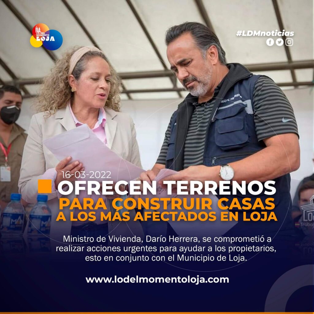 #Loja | Municipio de Loja y Ministro de Vivienda ofrecen terrenos para constuir viviendas para los más afectados.