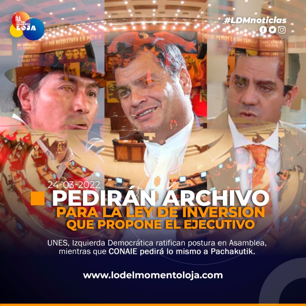 #Loja | La CONAIE demanda a los asambleístas de Pachakutik votar en contra de la Ley de Inversiones y pedir su archivo, lo mismo pasa con las bancadas de UNES e Izquierda Democrática, que mediante sus Jefes de bloques y representantes nacionales de partido, se suman al archivo de la propuesta del Gobierno del presidente Guillermo Lasso.