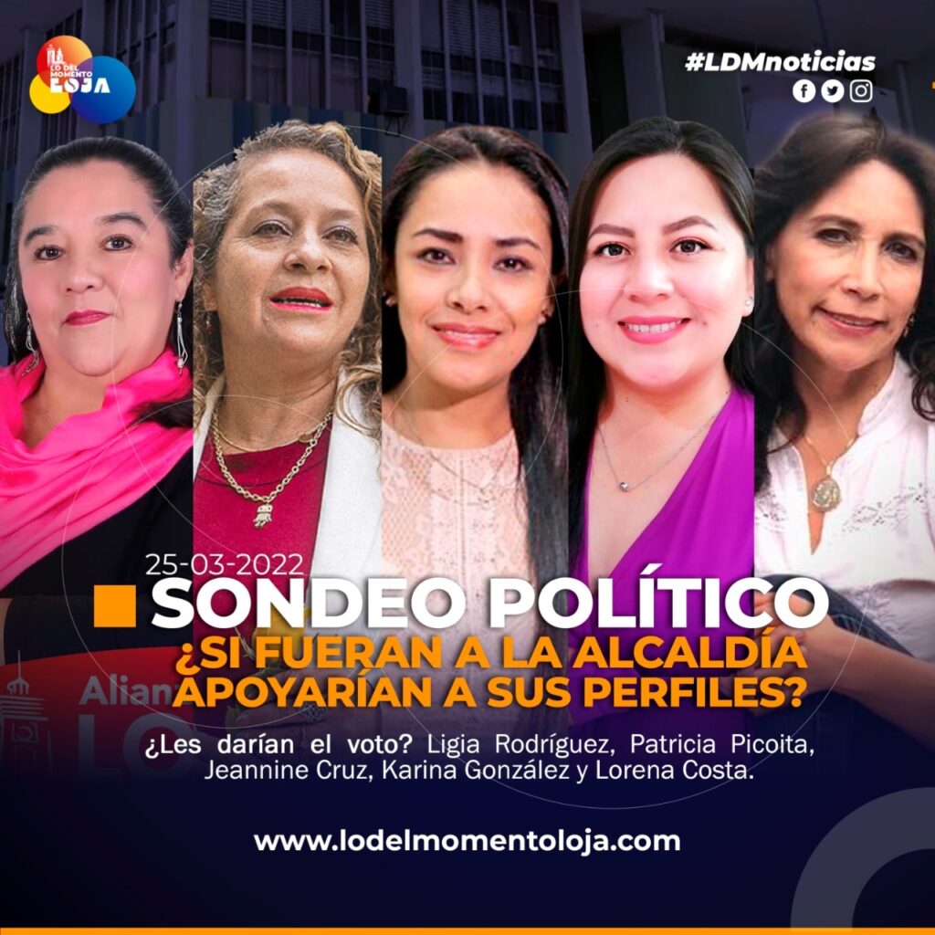 Antes de finalizar el mes de marzo 2022, la posibilidad de contar con rostros femeninos para la Alcaldía de Loja no ha sido muy visible, sin embargo, mediante este sondeo político se espera conocer si determinadas mujeres que han ejercido como autoridades pueden llegar a ser potenciales en una candidatura de Loja. En este sondeo oficial y al no haber la confirmación de ninguno de los mencionados, aquí mostramos algunos de los perfiles: