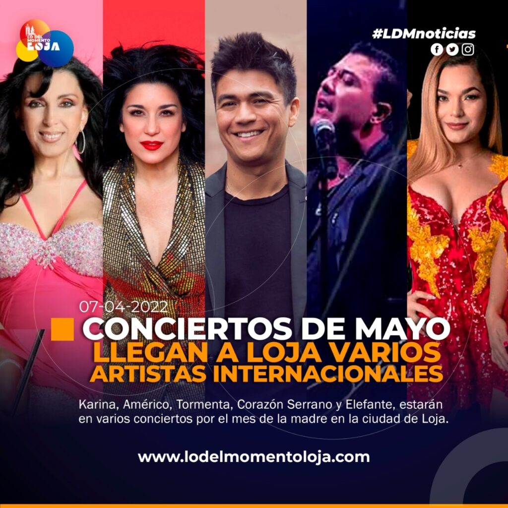 #Loja | El mes de mayo, será un mes lleno de conciertos en la ciudad de Loja, ya que varios artistas brindarán espectáculos internacionales para el deleite de la ciudadanía de la ciudad castellana, entre los que han confirmado, están: