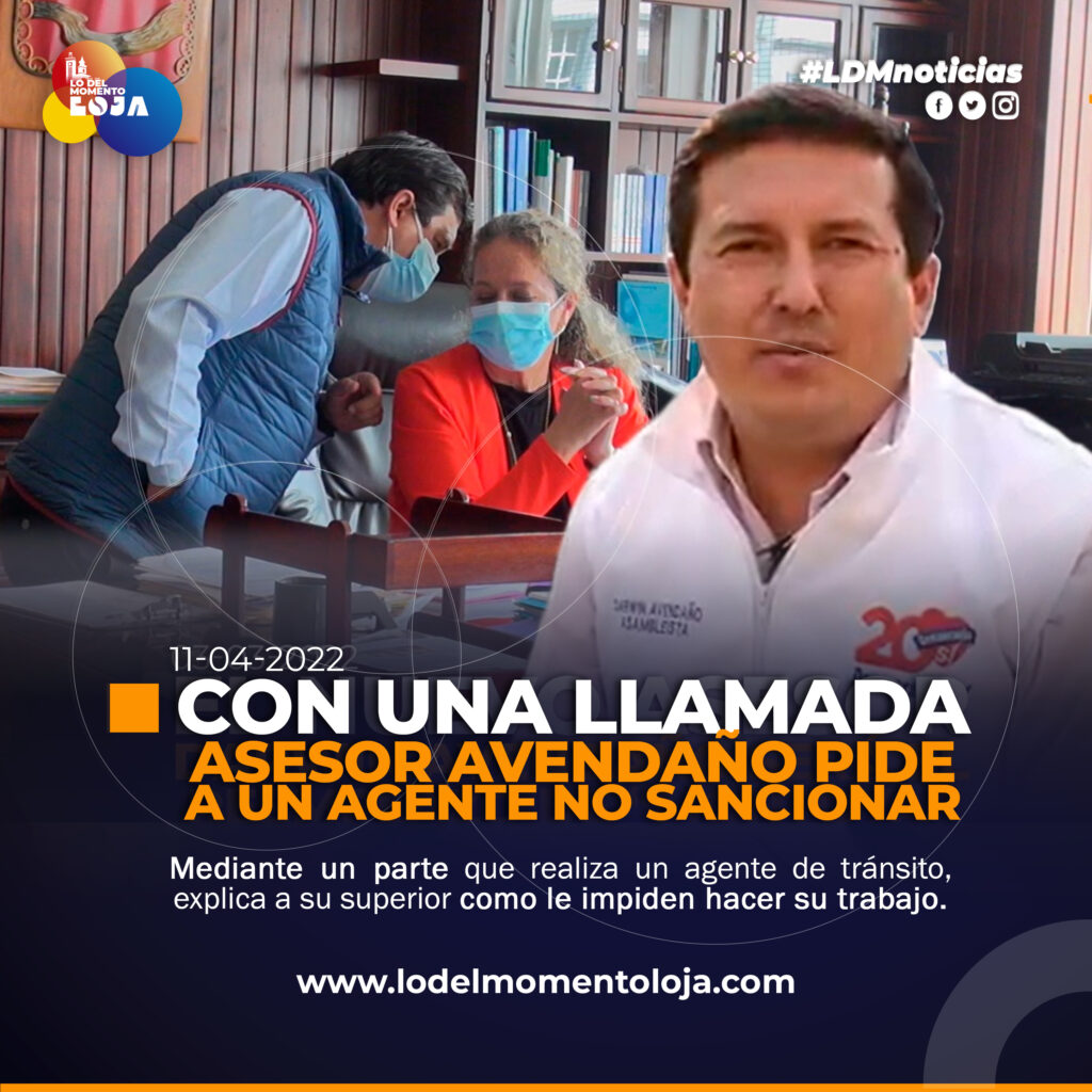 Mediante un parte informativo del 8 de abril del 2022, levantado por un agente de tránsito a su superior de la Unidad de Control Operativa de Tránsito (UCTO), institución que pertenece al Municipio de Loja, se ha procedido a informar que bajo una llamada del asesor de la Alcaldesa Picoita, Darwin Abendaño, intercedía por un ciudadano de nombres Wilson C, para que el funcionario no tomara procedimiento del servicio de control de documentos en la Av. Pablo Palacios (por los moteles), un acto que se encuentra normado en el Art. 386.3.1