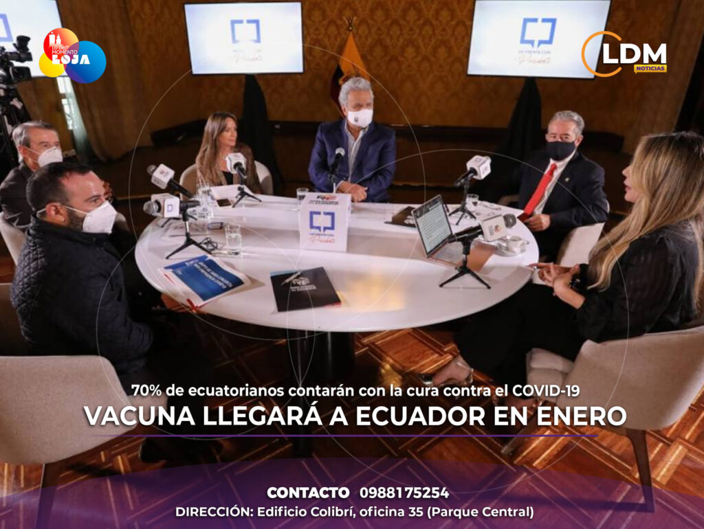 El presidente del Ecuador, Lenín Moreno, anunció este 23 de Noviembre del 2020 que el antídoto para prevenir el COVID-19 podría empezar a aplicarse en el país a partir de Enero del 2021.El gobierno de Ecuador, se refirió por primera vez a la distribución del vacuna.