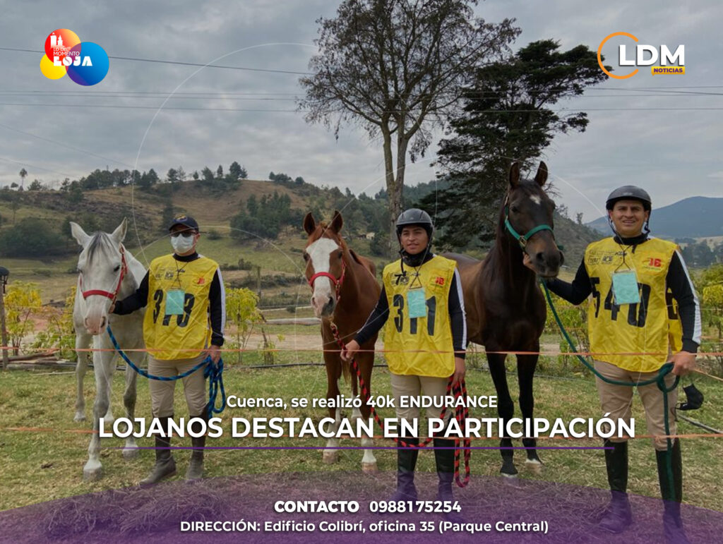 En la ciudad de Cuenca, se llevó a cabo el 40K de ENDURANCE, el evento consiste en que el caballo debe pasar pruebas de revisión veterinaria antes y después del recorrido de los 40 km. En este caso, el grupo de lojanos integrado por su jinete y caballo, fueron: