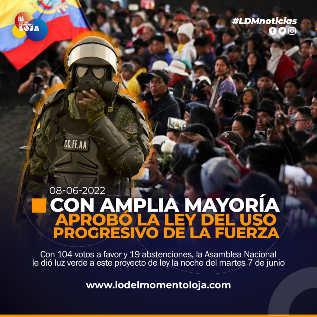 #Nacional | Se aprobó el proyecto de ley sobre el uso progresivo de la fuerza concedido a los servidores de la Policía, Fuerzas Armadas y de seguridad penitenciaria, con el propósito de proteger los derechos de estos. Pero desde Pachakutik se oponen, manifiestan que la policía podrá hacer mal uso de esta ley en protestas sociales.
