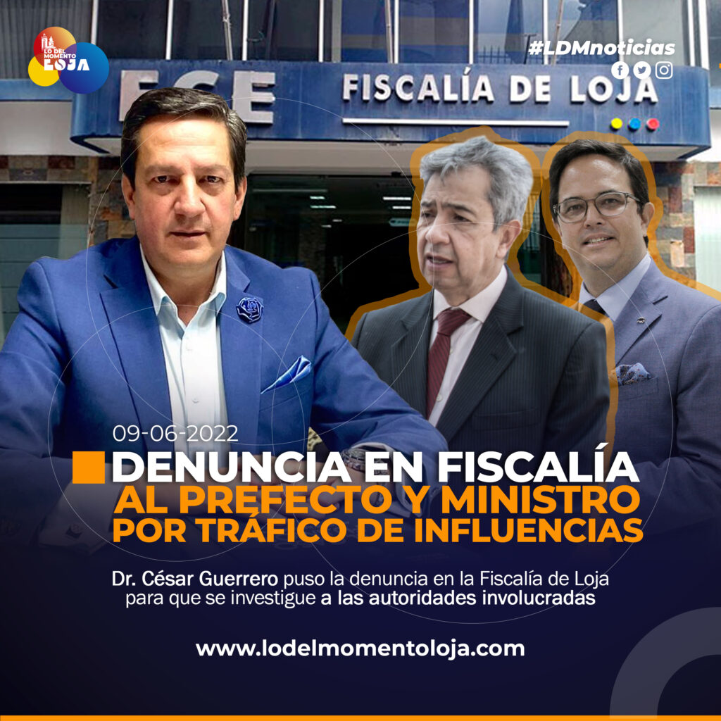 #Loja | El prefecto de Loja, Rafael Dávila, junto al ministro de minas, Xavier Vera, fueron denunciados antes la fiscalía por el presunto tráfico de influencias. Este hecho se dio la tarde del miércoles, 08 de junio de 2022, por parte del abogado César Guerrero, afirmando que estos actos no se pueden seguir ocurriendo para Loja.