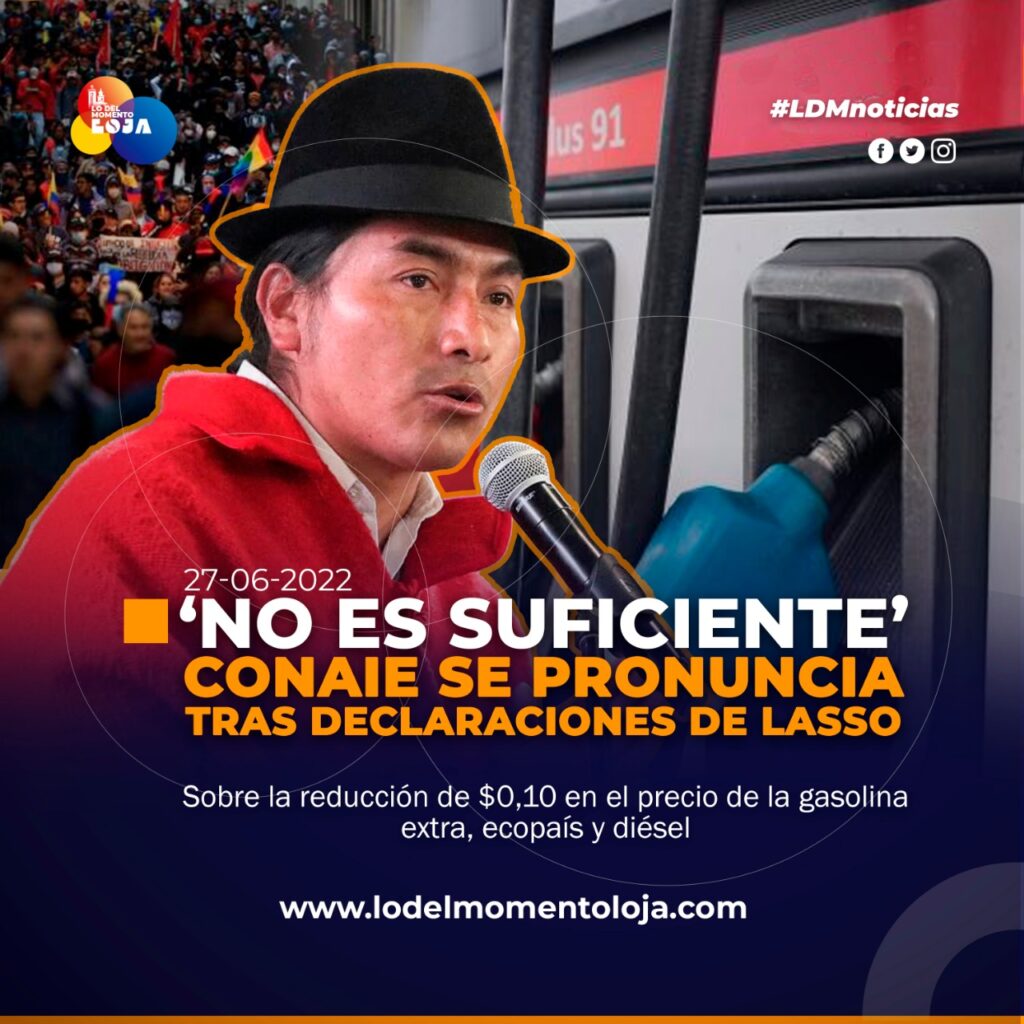 ‘Hemos escuchado los anuncios del presidente de la República sobre las medidas frente a la agenda planteada por las organizaciones, el presidente ha decidido la reducción de 0,10 centavos en diésel, gasolina extra y ecopaís, siendo una decisión insuficiente, sin garantías y que no se compadece de la situación de pobreza, que afrontan millones de familias, esta decisión no es suficiente, es insencible.’