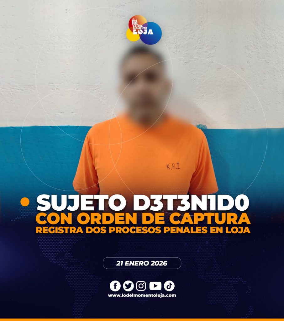 Sujeto fue detenido en Loja, registra dos ordenes de captura.