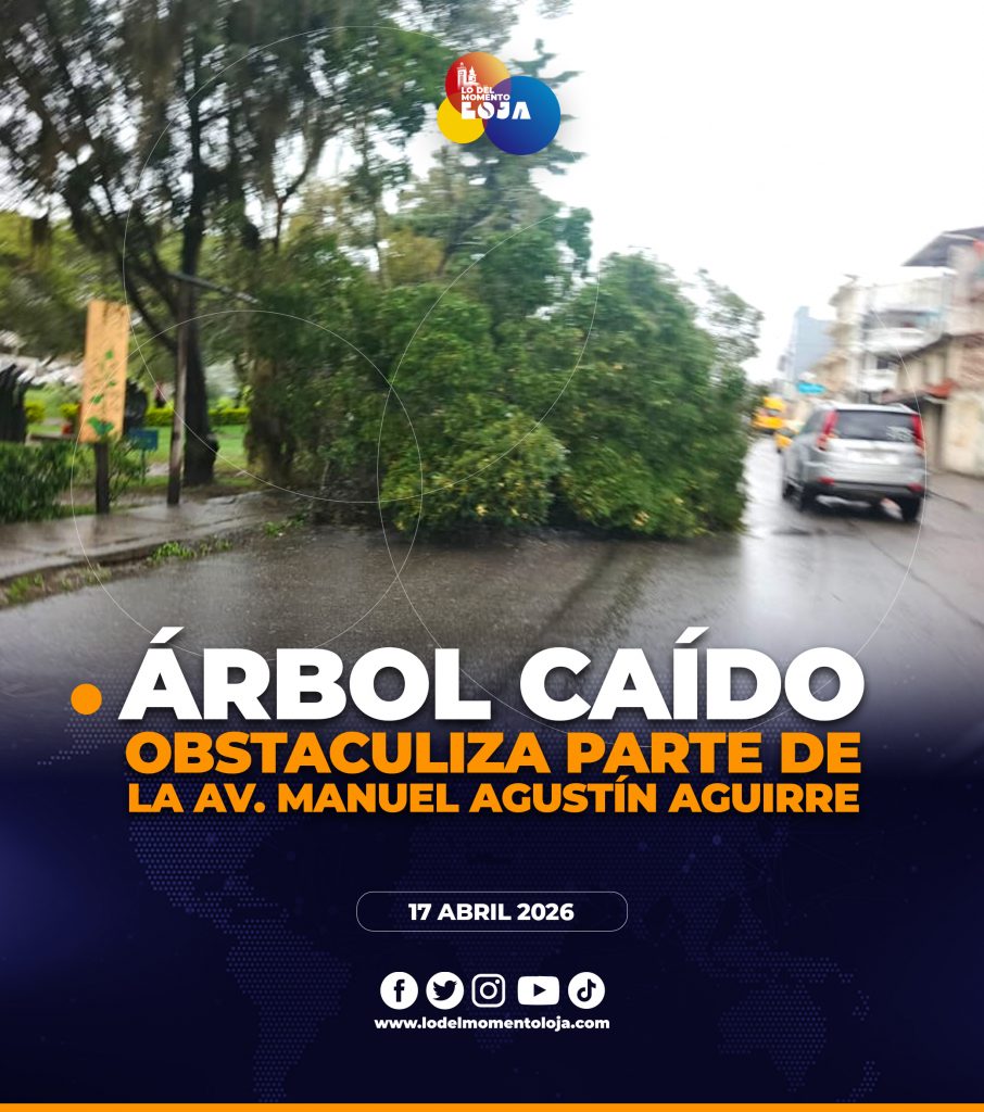 Árbol caído genera congestión vehicular en la Av. Manuel Agustín Aguirre de Loja.