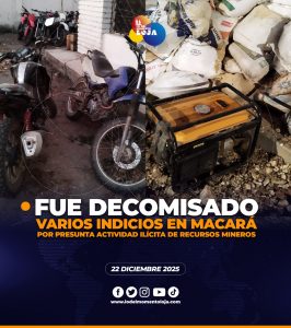 Autoridades decomisaron varios indicios por un operativo contra la minería ilegal.