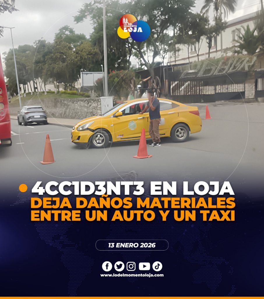 Accidente de tránsito entre un auto y un taxi, deja varios daños materiales en Loja